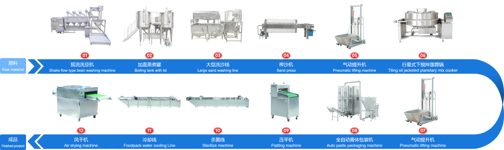 企業經多年研制開發的下攪拌可傾式蓮蓉鍋、下攪拌夾層鏟鍋、可傾式蒸煮鍋、去皮去核打漿機、立式熱抽真空包裝機、餡料風干壓平機、餡料冷卻線、江米條成型機、循環過濾油炸鍋、下出料脫油機等設備在國內同類設備中達到綠色環保標準,已報國家專利局和有關部門申請認證,成為企業的品牌產品,深受廣大客戶的支持和信賴。
